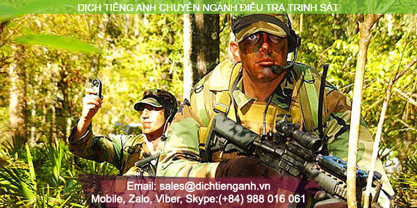 Trinh sát cũng có nhiều hình thức hoạt động như trinh sát ngoại tuyến, trinh sát đặc nhiệm, trinh sát ngầm, trinh sát trên không, trinh sát trên biển….Điều tra trinh sát không thể thiếu sự hỗ trợ của thiết bị khoa học công nghệ hiện đại như vệ tinh, tàu ngầm, máy bay quân sự, máy tính đa chức năng, điện thoại thông minh, vũ khí tối tân. Hoạt động điều tra trinh sát của các nước phát triển là kho tài liệu quý báu về cách thức đào tạo cũng như những chiến thuật trinh sát áp dụng cho hoạt động điều tra. Tuy nhiên, mỗi quốc gia có chế độ chính quyền khác nhau, do đó điều tra trinh sát vẫn mang những đặc thù nhất định. Do đó, để hiểu và dịch tài liệu tiếng anh về điều tra hình sự chuẩn, chính xác không phải đơn giản. Và dịch tiếng anh máy hoặc dịch tiếng anh trên google sẽ không giúp được nhiều trong dịch thuật tiếng anh chuyên ngành này.